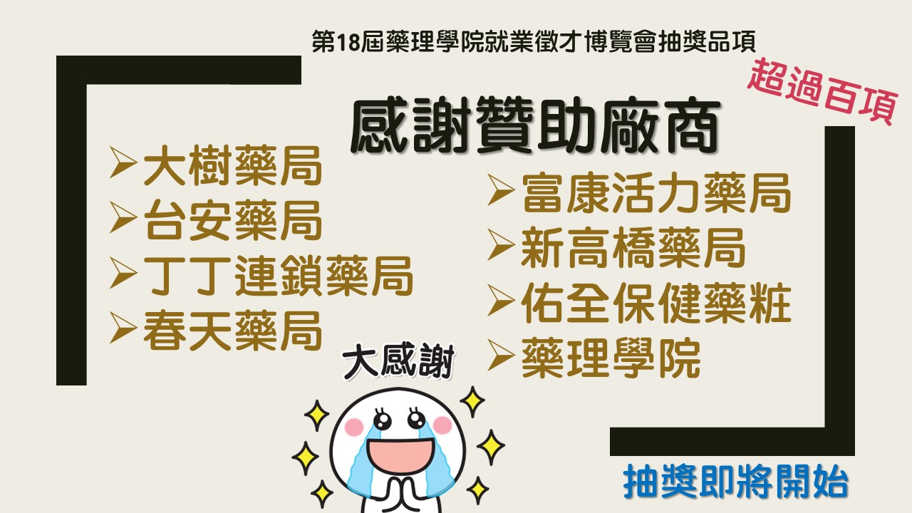 【2024第18屆藥理學院師生研究成果發表暨就業徵才博覽會集點抽獎】