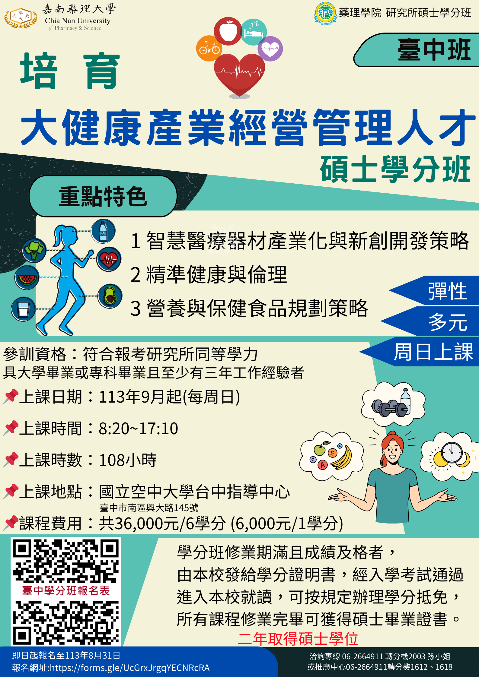 113-1《藥理學院碩士學分班》開始報名📩 臺北班報名連結:https://forms.gle/ChErWEfuX62Dykws8 臺中班報名連結:https://forms.gle/UcGrxJrgqYECNRcRA